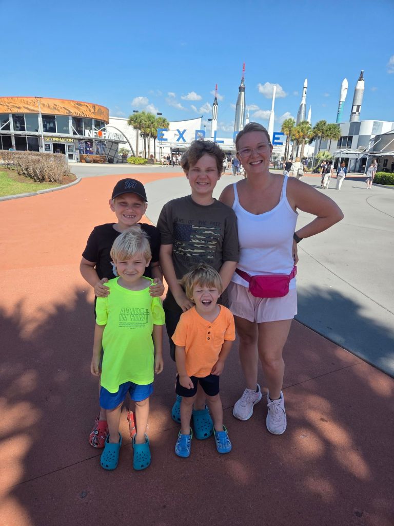 Today at the Kennedy Space Center we watched a video clip of the shuttle entering space leaving earth’s atmosphere.